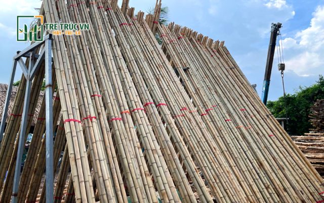 Cây trúc khô đã qua xử lý là một vật liệu trang trí đa năng, mang đến vẻ đẹp mộc mạc, gần gũi với thiên nhiên cho mọi không gian kiến trúc. Với đặc điểm thân thẳng, thon gọn, màu vàng óng tự nhiên cùng độ bền vượt trội nhờ khả năng chống mối mọt và cong vênh, trúc khô được ứng dụng rộng rãi từ nội thất đến ngoại thất. Trong không gian nhà hàng, quán cà phê hay homestay, trúc khô thường được sử dụng để ốp trần, ốp tường tạo điểm nhấn độc đáo, mang hơi hướng đồng quê thanh bình hoặc phong cách Á Đông tối giản. Đặc biệt, nó là lựa chọn lý tưởng để dựng vách ngăn, phân chia không gian một cách tinh tế mà vẫn giữ được sự thông thoáng, mát mẻ. Ngoài ra, những thân trúc nhỏ còn được dùng làm hàng rào, cổng chào hoặc tạo tiểu cảnh xanh trong sân vườn, ban công, góp phần mang lại sinh khí và ý nghĩa phong thủy tốt đẹp cho gia chủ.