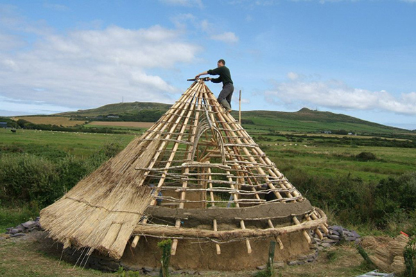Bức Tranh Bác Thợ Chính của chúng tôi đang lợp mái lá
